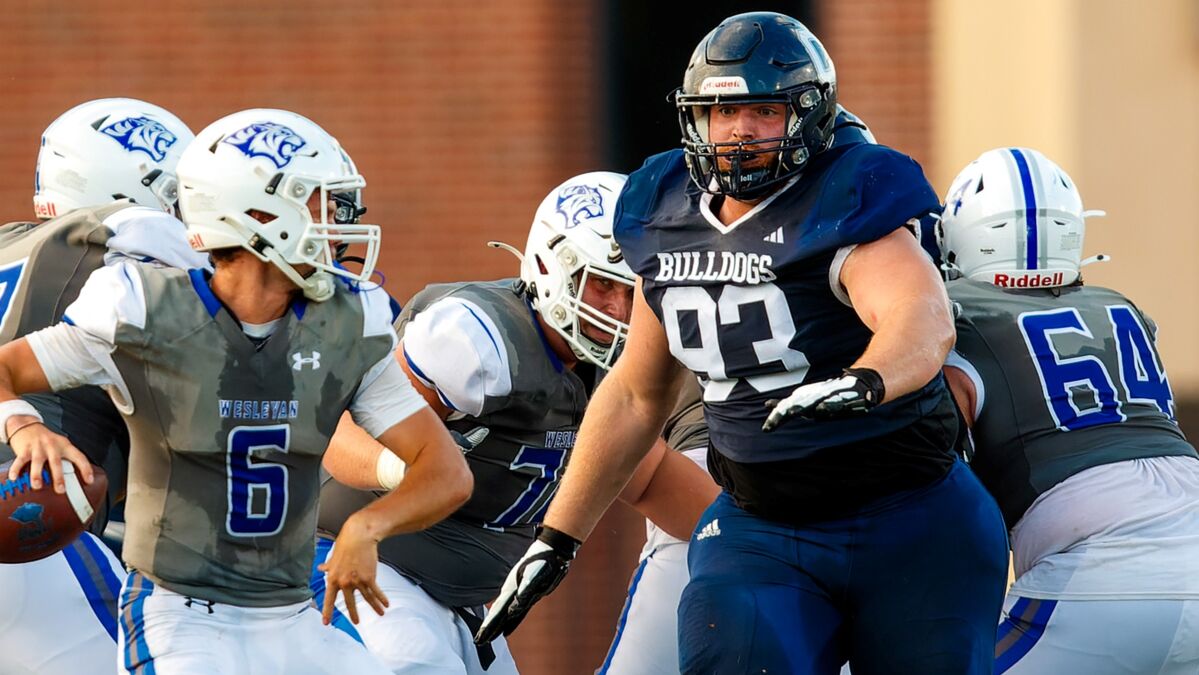 It was the weirdest game Head Coach Patrick Daberkow can recall. Carlos Collazo rushed for a school record 283 yards and the Bulldogs prevailed, 52-43, over Mount Marty in Yankton, S.D.