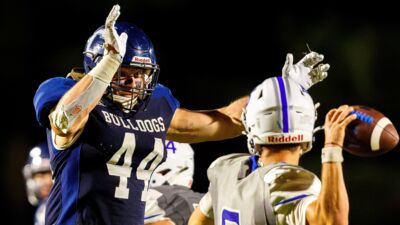 Gideon Stark fired three touchdown passes, Calvin Sassaman rushed for two scores and the defense shut Waldorf out in a 54-0 stomping in Forest City, Iowa. The Bulldogs have won eight games in a row.