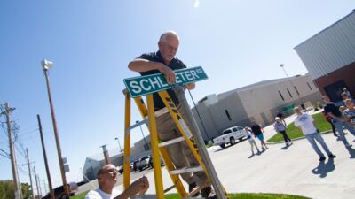 “God has blessed my family through its association with Concordia,” said Schlueter before those gathered (for the naming of Schlueter Road). Stan’s father, Leonard, worked in Concordia’s business office, and Stan’s siblings, wife and children attended. As for his legacy, Schlueter urged Concordia to continue its mission and for co-workers to “keep it going.” “It’s important to educate these young people in a Christ-like manner,” he said.