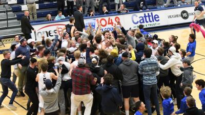 Limback joked that the first thing he saw was AJ Watson wrapping him up in a bear hug. Kent tried to make some sense of the moment after the heartrate came back down. Said Kent, “Coach said when he drew it up, ‘You gotta throw it to Tristan.’ He’s like, ‘You gotta throw it all the way.’ I knew they were going to put a big man on the ball. I just threw it up there and hoped it was going to get there, and thankfully it did. It was pretty crazy. Tristan’s so athletic that he went up and got it.”