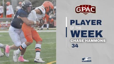After notching two sacks and three tackles in a dominant defensive performance versus Jamestown, senior Chase Hammons was named GPAC Defensive Player of the Week.