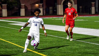 · The Bulldogs traveled to face York and found themselves in a tie (1-1) by the end of the match. Concordia was awarded a free kick just outside the penalty area barely into the 2nd minute of the match. D’Andre Williams kicked a spinning ball over three defenders and the teardrop found its way just inside the near post for the score. The London, Ontario, native added to his scoring total (5) as a Bulldog and his two assists from this season. The Bulldogs and Panthers were deadlocked at seven shots apiece, while the visitors edged out the home team in shots on goal (5-4) and corner kicks (3-2). Fuelberth added three saves pushing his total to 20 on the year.