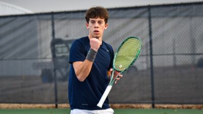 At No. 1, Nick Velders set the tone with a decisive 6–1, 6–4 victory over Ashton Rames, using steady baseline pressure and efficient serving. The returning GPAC Player of the Year clinched the fourth and final team point to complete the match victory. He is 6-0 going back to last season in his last six completed singles matches.