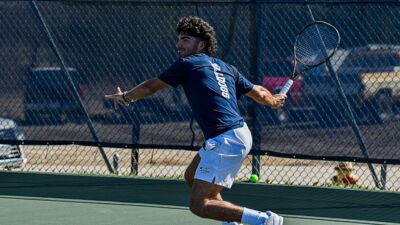 Taking the momentum from doubles, Fuentes caught fuego and flamed through Fletcher, 6-1, 6-2, only giving up three games before his fast finish. Michael Bedrosian fell to Travis Subbert in the first set (1-6) but found strength in the second set and endured a 6-4 second hard fought set. In the tiebreaker, the Fowler, Calif., native continued to fight and snatched the triumph from the Dutch.