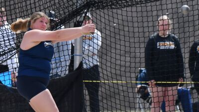 In additional field events that took place on Saturday, Addie Reimer cleared 5’ 3 ¾” in the high jump, Hayley Miles landed at 17’ 11” in the long jump, Sydney Reichert rose above 10’ 9 ¼” in the pole vault, Jax Jacobson vaulted 14’ 11 ½” and Jonah Paulsen posted a mark of 45’ 1” in the triple jump.