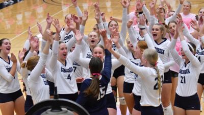 There were also strong contributions made by Ella Waters (seven kills and three blocks), Ava Greene (seven kills, .500 hitting percentage) and Cassidy Knust (14) digs. Keck also added 18 digs while the setters Lily Psencik (22 assists and nine digs) and Savannah Shelburne (27 assists and nine digs) combined for 49 assists on the team’s 56 kills. Lanie Brott also saw action and collected two kills in the fourth set.