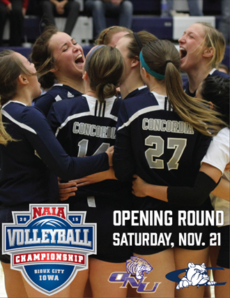 SEWARD, Neb. – Not since the 2001 NAIA football playoffs has Concordia University played host to a national championship event. That will change on Saturday when the Bulldog volleyball program welcomes Olivet Nazarene University (Ill.) for the opening round of the 2015 NAIA Volleyball National Championship. Concordia and its opponent from the Chicagoland Collegiate Athletic Conference will get play underway at 1:30 p.m. CT from Walz Arena.