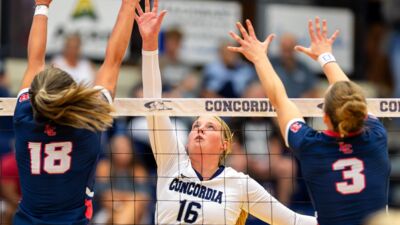 After the quick postgame celebration, Concordia regrouped for one final match on the weekend. Said Boldt, “I told them that this last match was going to be our toughest match. It’s more of a mental thing where you have to get yourself ready to go. Playing back-to-back games is different. It’s going to test you mentally.”