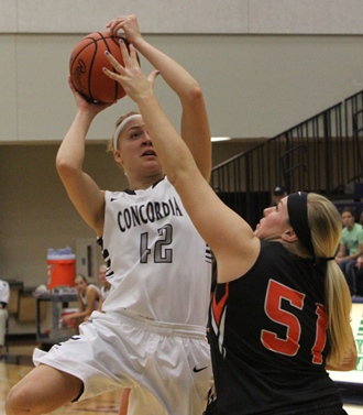 SEWARD, Neb. – A spot in the March 3 GPAC tournament championship game will be on the line Saturday when the third-ranked Concordia University women’s basketball team hosts No. 12 Hastings in a GPAC semifinal clash. The Bulldogs got all they could handle from seventh-seeded Mount Marty in a 71-66 Concordia win in Wednesday’s GPAC quarterfinal game. Tracy Peitz put up 17 points in a fine all-around performance and Bailey Morris made crucial plays down the stretch to thwart the Lancer upset bid.