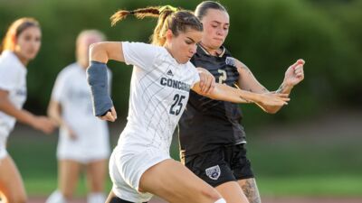 Down one in the second half, Concordia Women’s Soccer scored two goals within three minutes and held on to complete the comeback over Dakota Wesleyan in Mitchell.