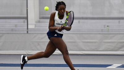 Chakira sealed the shutout for Concordia with a commanding 6-0, 6-1 win over Mount Marty’s Maria Luisa at No. 2 singles. Her victory came as no surprise after she teamed up with Alana Lopez Pagan in doubles to secure a 6-1 triumph over Camila Lopez and Kayla Marsh. Chakira won her ninth match (singles) of the season and the 18th of her career.