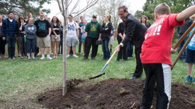 Concordia partnered with area fourth-graders to plant a tree April 24 in honor of the University A Cappella Choir’s 75th anniversary and Arbor Day. Concordia also received the “Friend of Tree” award from the Seward Tree Board for its on-campus arboretum.