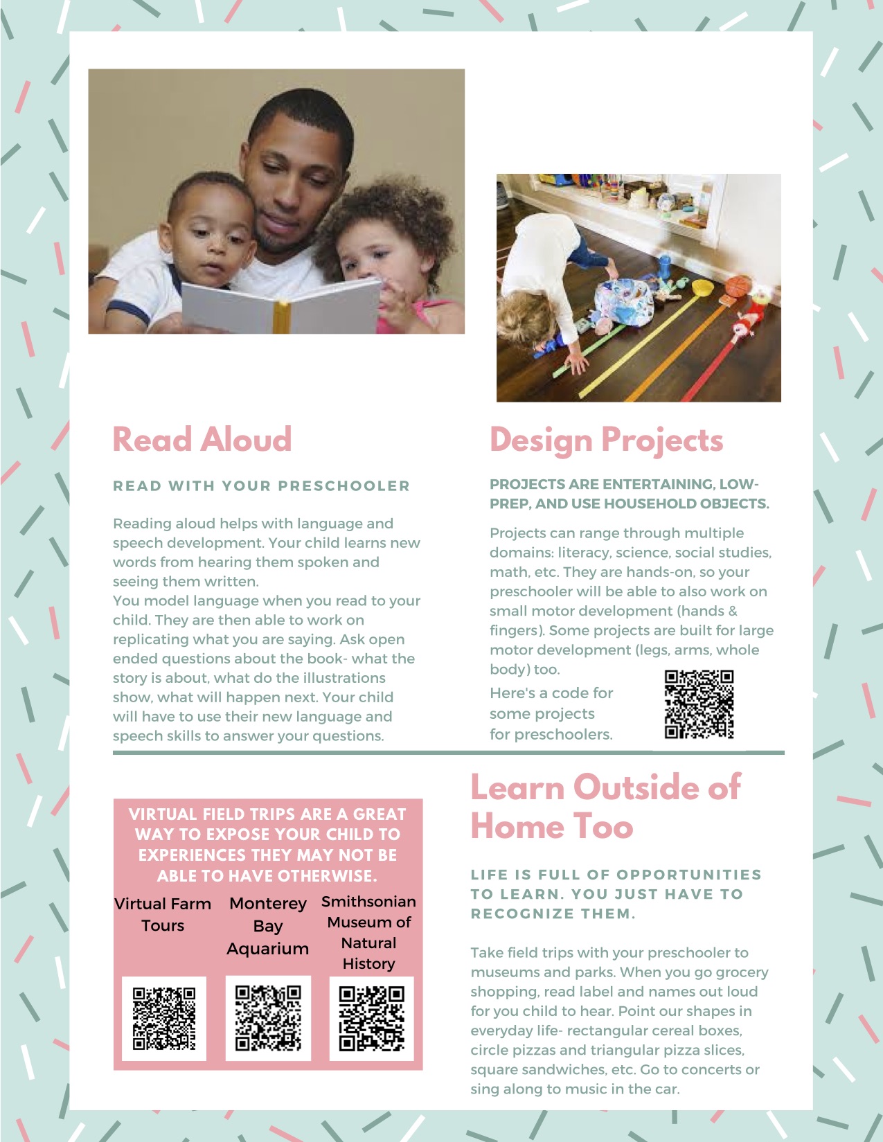 Students also developed a Message in a Backpack about Learning at Home for children ages birth through eight.